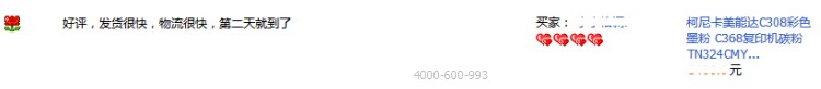 第二天,謝先生收到貨了,把碳粉更換上機器使用后,就過來給了評價。評價如下: